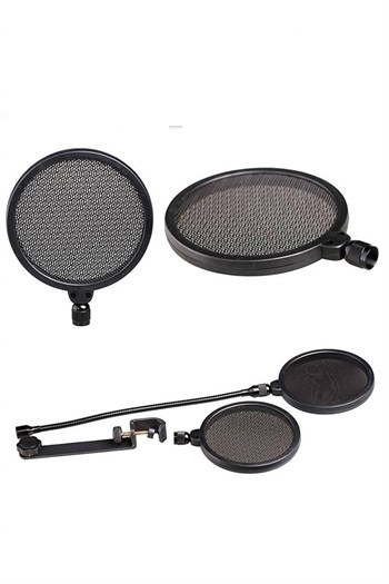 HM18AG çift katmanlı filtre profesyonel. Metal örgü ve naylon kumaş: Bu iki ekranları içerir. Bir dişliadaptör 5/8 "ile, HM18AG mikrofon ses patlayıcı pop korumak için standı bir mikrofon monte edilebilir.Vai yüksek frekans yanıtını etkilemez.
