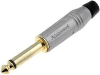 1/4" (6.35mm) Mono Phone plug, Diecast Shell, Nickel finish, Flexible grommet. Nickel Body/Gold Contacts